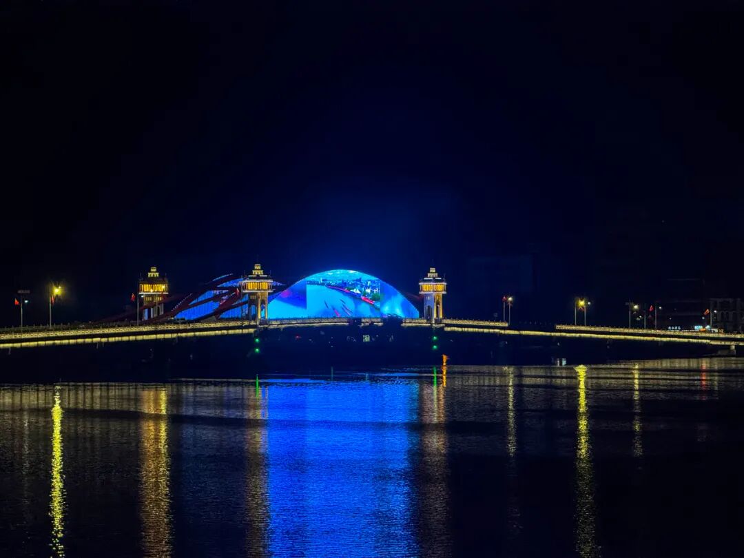 华灯初上,数千套LED灯组将潭江大桥装点得熠熠生辉,璀璨影像诉说着侨乡的往昔故事与今朝风采,幻彩灯光勾勒出桥身流畅的线条,宛如水上的“光影长虹”。与潭江大桥遥相呼应的祥龙桥也焕发出新的光彩,二者共同勾勒出潭江夜晚的崭新轮廓。 此外,世纪之舟披上了“数字皮肤”,柔和的灯光环绕其主体,点点星光点缀着“船帆”,仿佛一艘白色帆船在潭江上乘风启航;其顶端则借助激光投影,在水面上呈现“三点三精彩之旅”“潭江潮起,侨风浩荡”等主题影像,光影变幻间,绘制出一幅幅视觉画卷。 放眼望去,潭江之水缓缓流淌,两岸建筑错落有致,绿树长廊连绵不断,河堤步道整洁宜人。标志性景观建筑与潭江交相辉映,流光溢彩,光影斑驳。市民和游客沿江堤漫步时,一路领略着不同的侨乡风情,深刻感受到开平这座城市的独特魅力。 为加速历史街区的活化与利用,延续侨乡历史文化脉络,开平市启动荻海埠保护更新综合开发项目。其中,一期项目涵盖世纪之舟、潭江大桥及祥龙桥的改造提升工程。项目负责人表示,这次改造提升工程不仅注重景观的视觉效果,更在细节处彰显侨乡文化的深厚底蕴,为开平农文旅融合发展注入新的强劲动力。 “世纪之舟作为滨江区域的标志性景观节点,通过外观修复与灯光亮化,将焕发新的活力;潭江大桥、祥龙桥等桥梁的翻新工程,则进一步提升了滨水空间的连通性与景观协调性。这些改造不仅是城市面貌的更新,更是对侨乡历史文脉的延续与活化。项目致力于打造更具吸引力、更富文化底蕴的滨水公共空间,为市民和游客提供更优质的休闲体验,助力开平文旅融合发展,展现‘三江六岸’的独特魅力。”项目经理李旭焘说道。 接下来 开平市将继续 以城市品质提升为抓手 通过更多创新举措 让侨乡文化在新时代 焕发出更加绚丽的光彩 为市民和游客带来 更加丰富多彩的文旅体验