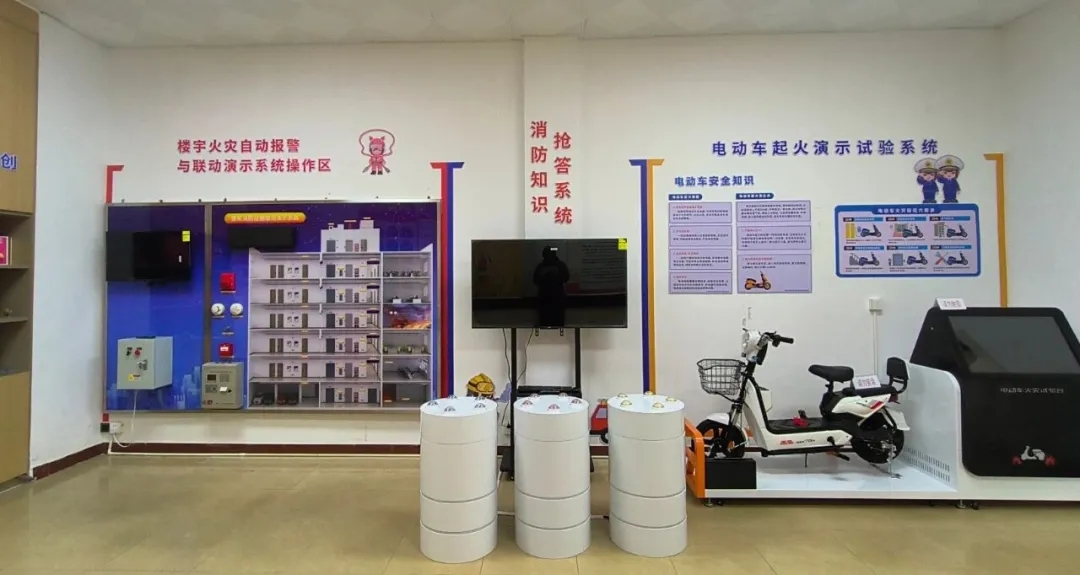 开平市消防救援大队消防教育科普体验室,是江门市基层消防大队中首家建立的消防教育科普体验室,面积约60平方米。该沉浸式智能科普平台,从“防”“灭”“救”三个维度,全面展示了消防形象、知识科普、技能体验、设备实操、应急救护五大展区,其中配置有电动车起火模拟实验台、消防知识抢答与学习、楼宇火灾报警联动系统、VR火灾现场模拟体验、应急绳结学习、消防器材展示等功能区。通过“场景+体验+互动”的多元化宣传模式,让群众零距离体验和学习消防知识。