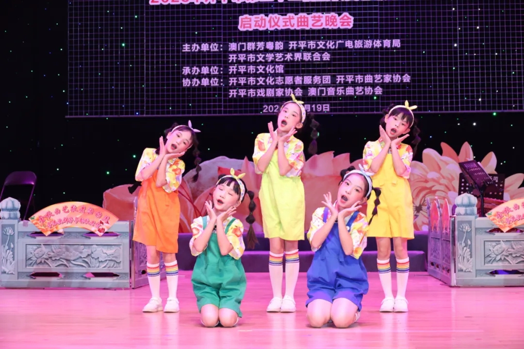 随后,精彩曲艺节目轮番上演。其中,开平市文化馆、梁金山小学带来粤曲表演唱《侨乡童韵》,该节目经过邝英女士的悉心指导,孩子们用天真烂漫的表演展现了侨乡孩童的童真可爱。“《侨乡童韵》唱出了开平儿童活泼可爱,爱家乡,唱出侨乡娃的童真与热情。今晚表演既紧张又开心,站在舞台上展现家乡风采,听到掌声特别自豪。”梁金山小学学生梁馨予说道。