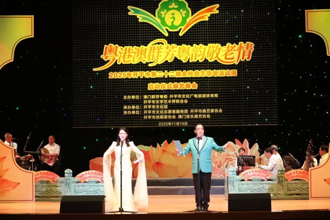11月19日晚上,纪念红线女诞辰100周年系列活动“粤港澳群芳粤韵敬老情”2025年开平市第二十二届金秋曲艺敬老活动周启动仪式曲艺晚会在开平市人民会堂举行,进一步繁荣侨乡曲艺事业,传播敬老爱老传统美德。广东省文艺评论家协会副主席梁少锋,开平市领导谭意军、梁俏筠出席活动。