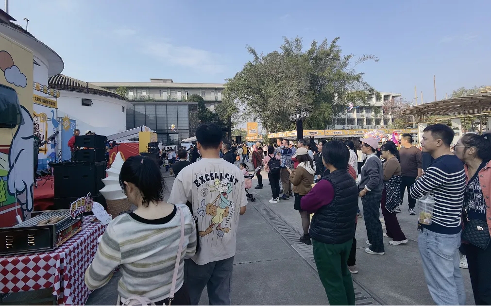 游客们在这场活动中尽情享受着惬意的周末休闲时光。市民小锋周末与父母到天下粮仓游玩、看书,看完书后也被吸引过来,“这里有很多我喜欢的小吃。”小锋说道。市民陈先生表示活动现场氛围浓厚,“小朋友有玩的地方,大人也有逛吃的地方。马冈鹅、凉粉这些小吃都很好吃。”