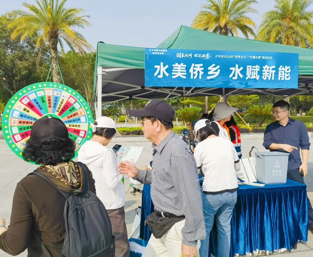 今年3月22日是第三十四届“世界水日”;3月22日至28日是第三十九届“中国水周”,主题为“国家水网 世纪画卷”,明确了我国水利现代化发展的战略方向。3月23日,开平市2026年“世界水日”“中国水周”宣传活动启动仪式在市人民公园举行,通过丰富多样的宣传活动,吸引广大市民踊跃参与,在沉浸式体验中增强节水护水意识,凝聚起共护开平水资源安全的强大合力。市领导谭晓华参加活动。