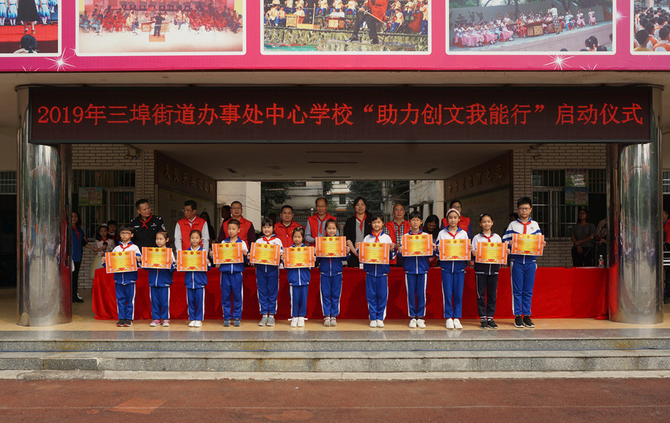 3月19日上午,开平市三埠街道中心学校在新安小学举行2019年“助力创文,我能行”行动启动仪式,动员全体师生积极参与“创建国家文明城市”行动,让广大师生进一步熟知社会主义核心价值观的内容,提升共同参与创建全国文明城市的热情,培育和塑造高尚的道德品质。