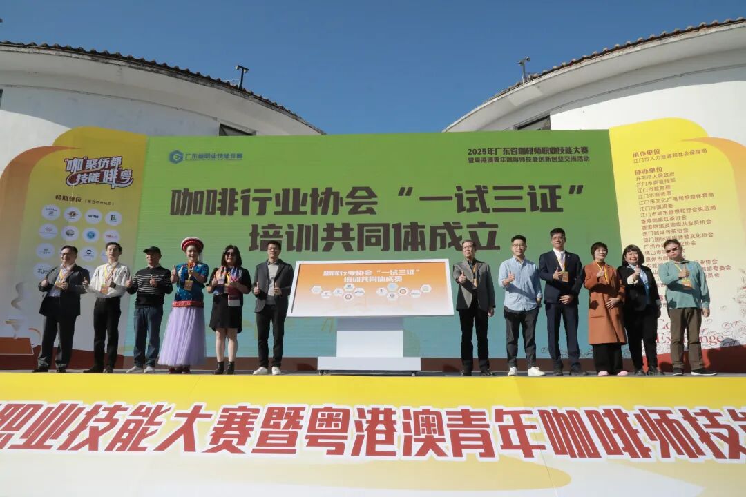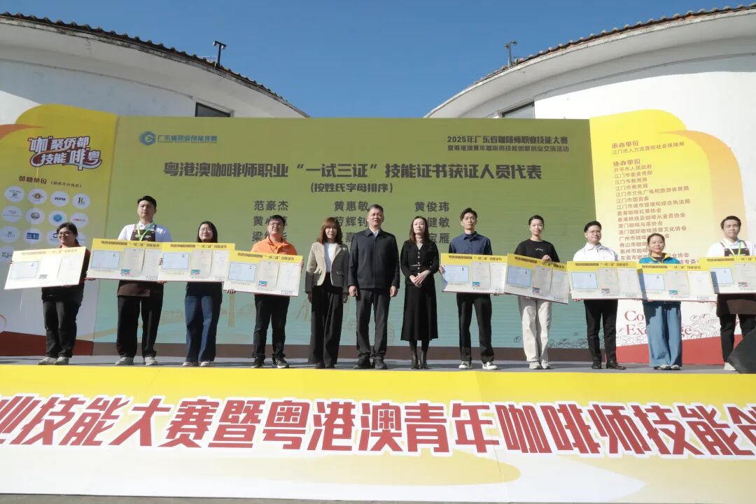 2019年起,在广东省人力资源和社会保障厅的推动下,江门携手港澳,在全国首创粤港澳咖啡师“一试三证”技能评价模式,实现“统一标准、一次考试、三地认可、四证齐发”,为全省乃至全国咖啡技能人才培养评价和产业协同发展提供江门经验。
