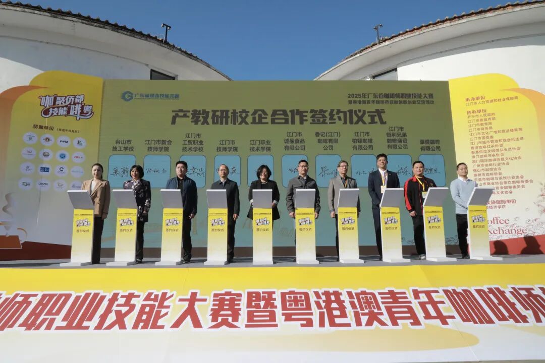 开幕式上,云南农业大学与江门市技师学院,广州市旅游商务职业学校与江门市新会技师学院分别签署合作协议,旨在共同推进咖啡课程建设与人才培养。