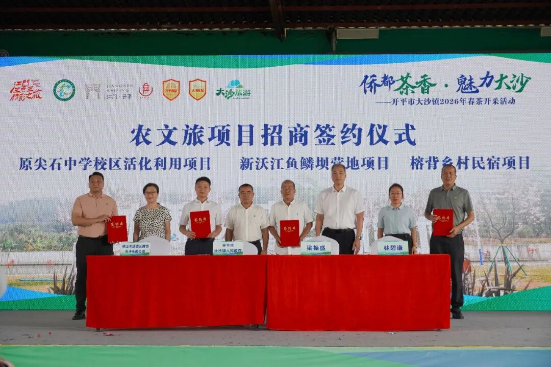 近年来,大沙镇紧抓开平整县推进农文旅融合发展试点以及环孔雀湖美丽经济发展区建设的有利契机,坚持“生态立镇、产业强镇、文旅兴镇”发展思路,以一叶飘香赋能乡村全面振兴,大沙茶获评国家地理标志保护产品,2025年更是成功入选省重点培育的十亿元级现代茶叶产业集群,持续推动生态优势、资源优势转化为发展优势、经济优势。活动现场还进行了农文旅项目招商签约仪式,以招商带项目,以项目促发展,为大沙镇农文旅产业持续健康发展注入了强劲动力。