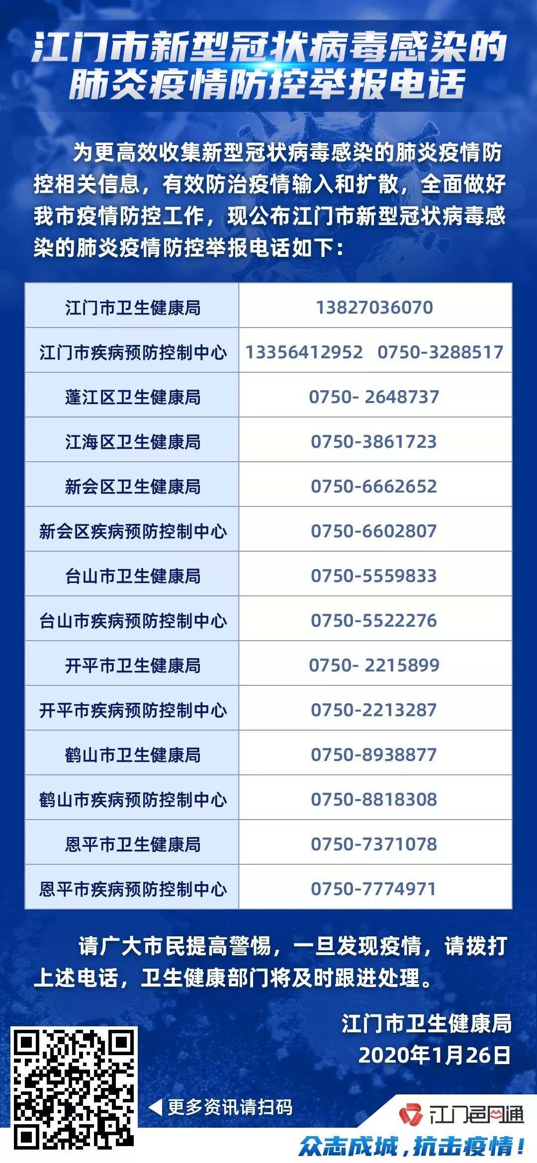 自2月8日起,请从外地(江门地区以外)返回开平的本地居民及到达我市的外来人员(江门地区居民除外),必须在1小时内主动向居住地所属村(居)委会报告、登记,或通过上方二维码自行登记。若不遵照执行,将依法追究其相应法律责任。 详细内容请见:开平市新型冠状病毒感染的肺炎疫情防控指挥部通告(第9号)