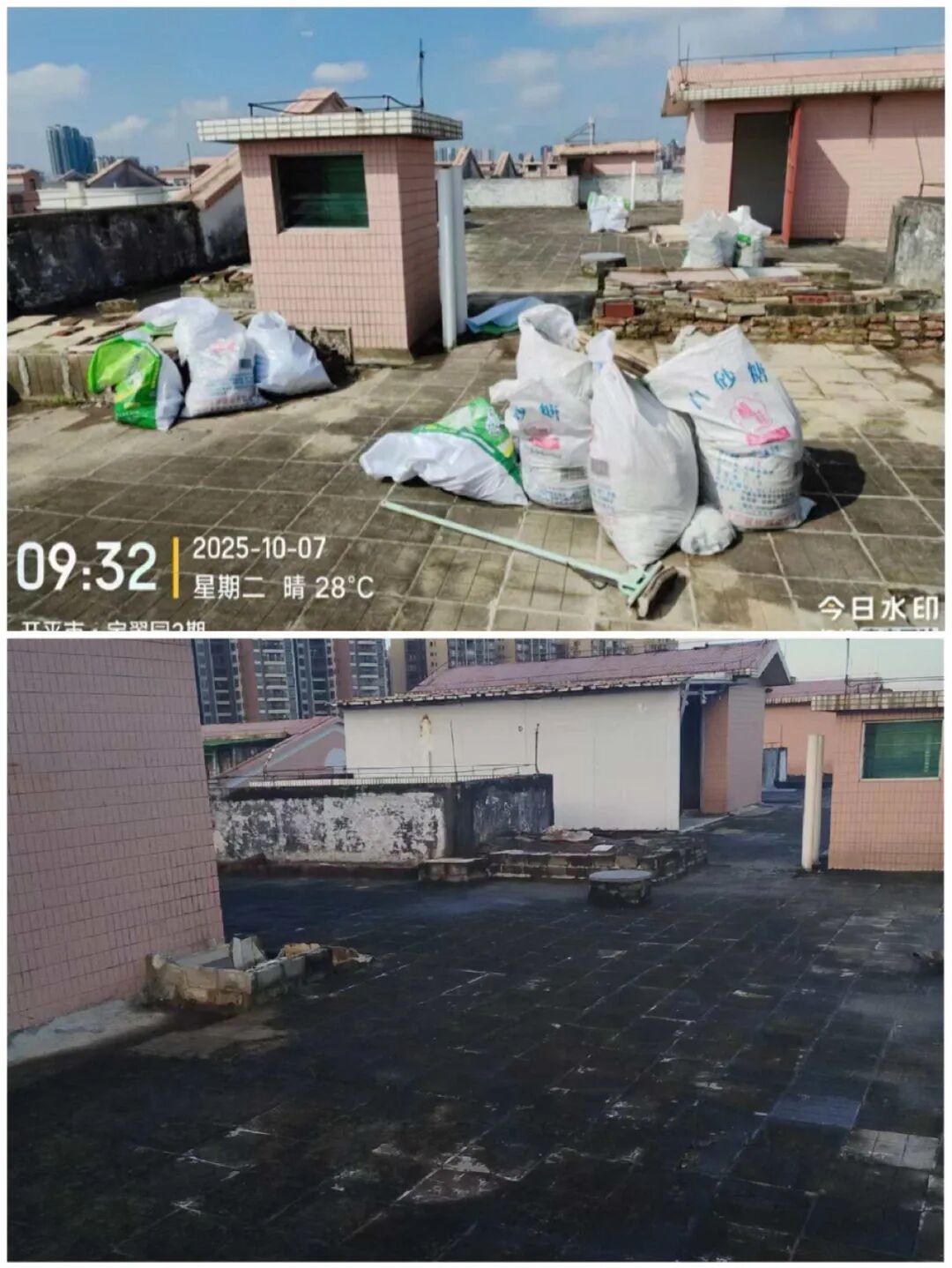 环境整治过程中,居民们也积极参与,有的主动清理自家在天台的杂物,有的为志愿者提供工具和帮助,形成了齐心协力、共同整治的良好局面。现在,从无人机视角俯瞰,宝翠园小区的天台干净空旷,排水管和地漏畅通无阻。“工作人员来搞卫生,用清运车和吊车,把天台的垃圾吊下来,拆除私自搭建棚架,把天台弄得非常干净,居民也很配合,在家点蚊香。”宝翠园小区居民关阿姨说道。小区居民吴阿姨也同样为这次爱国卫生运动点赞“天台没有搞卫生之前,很多杂物和绿植,孳生了很多蚊虫。现在走上天台比以前好很多,没有杂物了,环境变好了。”