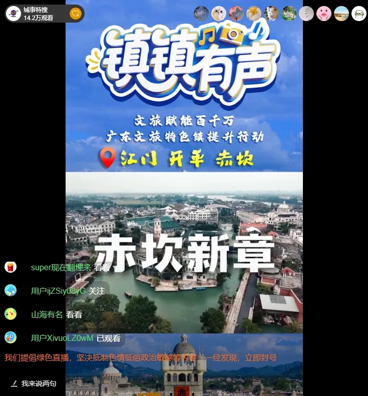 “镇镇有声——文旅赋能百千万 广东文旅特色镇提升行动”依托大湾区媒体融合传播优势,联动“广东文旅”“大湾区卫视”视频号、抖音号及“城事特搜”视频号、粤TV等多平台,对全省20个创先级文旅特色镇进行系列直播,系统呈现各地文旅资源、农文旅融合项目与特色产品,致力于打造具有持续影响力的乡镇文旅IP矩阵。