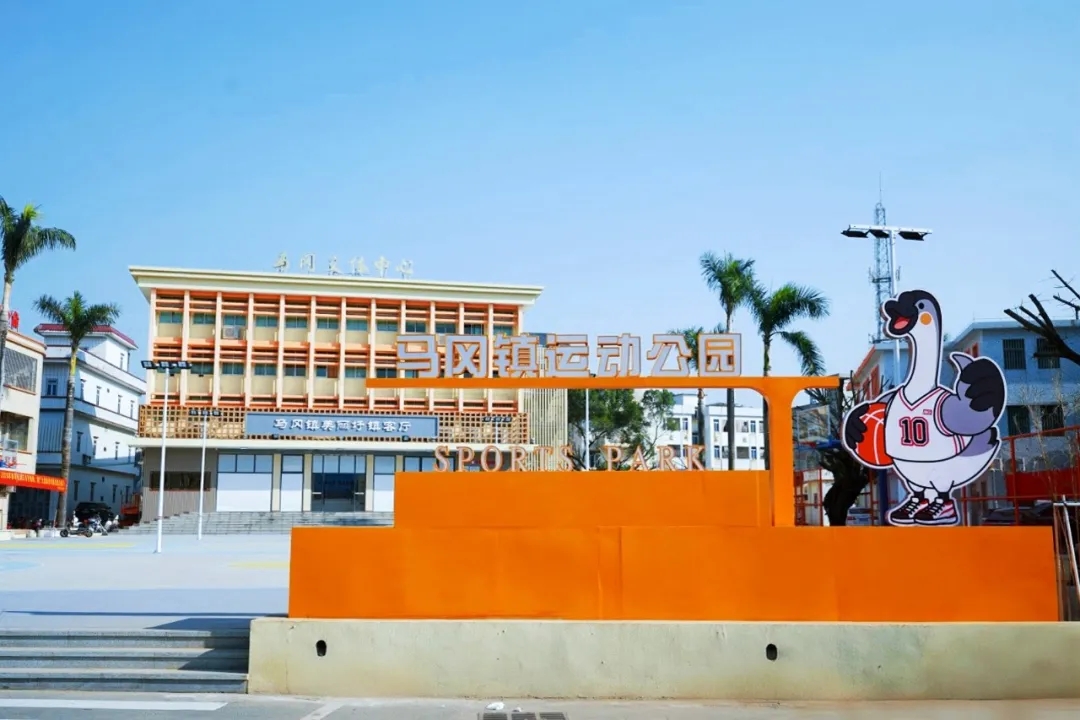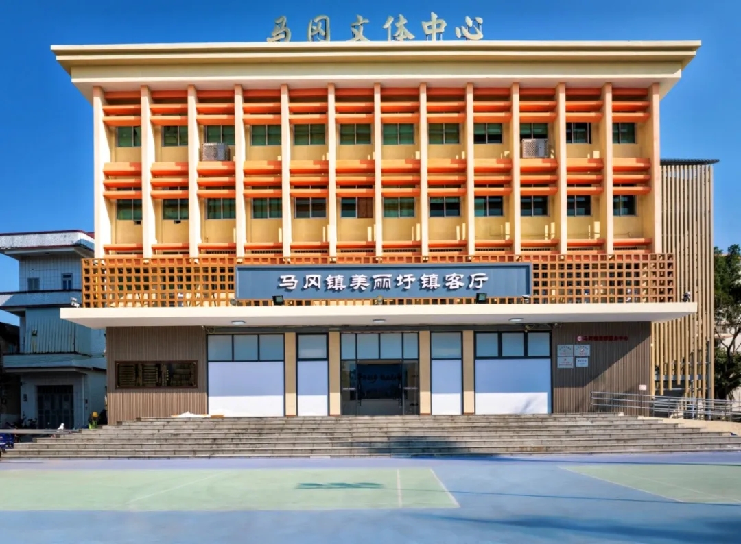 马冈镇美丽圩镇客厅位于马冈镇文体中心一楼,项目利用原文体中心一楼开放活动区进行升级改造,通过增设玻璃外墙形成相对独立的公共空间,打造全新展厅。项目建设带动文体中心大楼外立面实施翻新升级,完善公共卫生间等配套设施,并增设夜间亮化设备,客厅外篮球场、羽毛球场、乒乓球台等体育设施实现同步升级,使客厅和文体广场整体成为马冈镇美丽圩镇“七个一”中的一个亮点工程。
