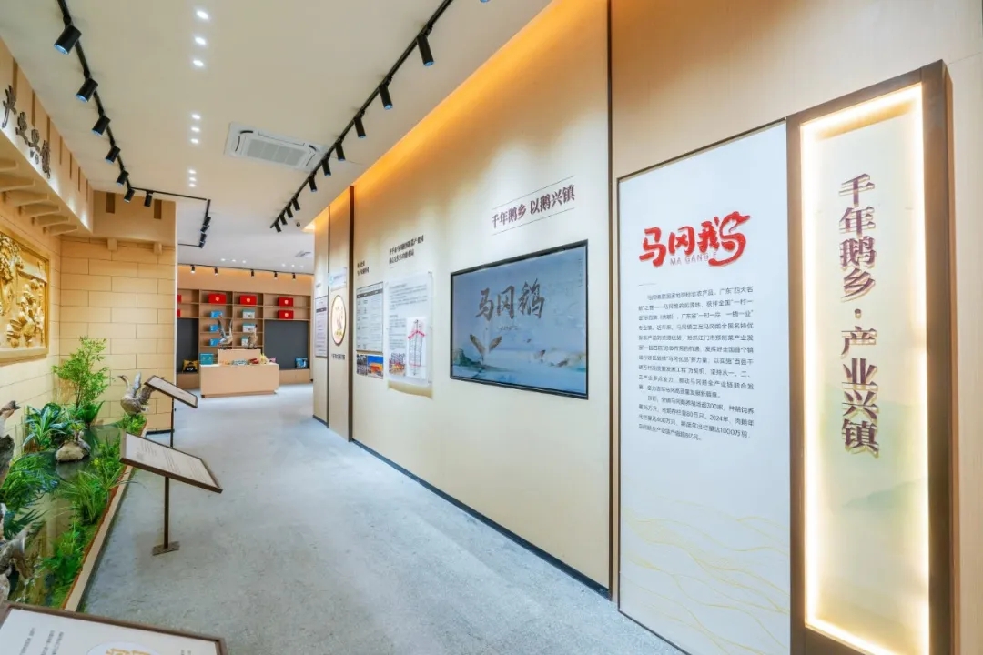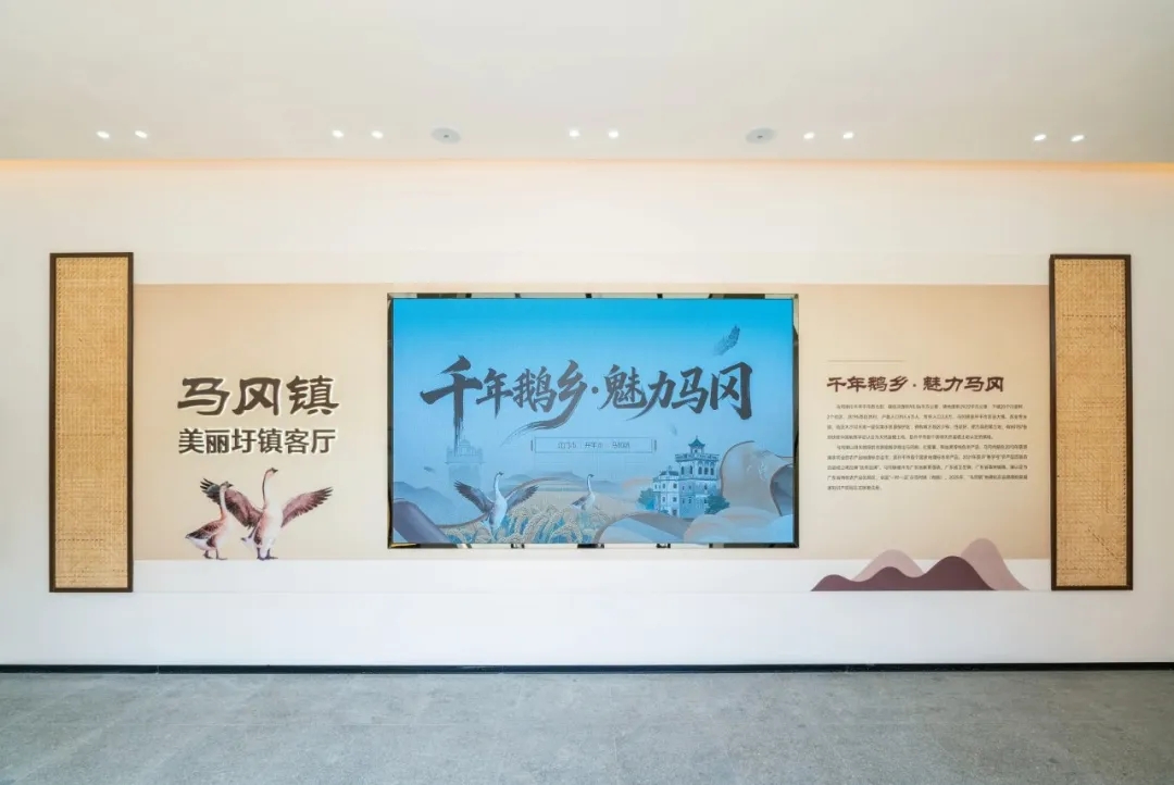 美丽圩镇客厅内部紧密结合马冈镇地方特色,分别以“序厅·印象马冈”“历史长廊·圩韵千年”“当代华章·绿美家园”“千年鹅乡·以鹅兴镇”“未来畅想·智绘蓝图”为主题,分区展示马冈镇实施“百千万工程”,推进乡村全面振兴取得的显著成效,成为了向人民群众推介马冈历史文化、和美乡村和特色产业的重要窗口。