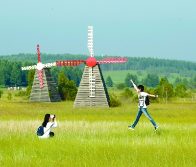 游客在七星湖假鼠妇草湿地公园拍照留念。记者 马列摄/光明图片