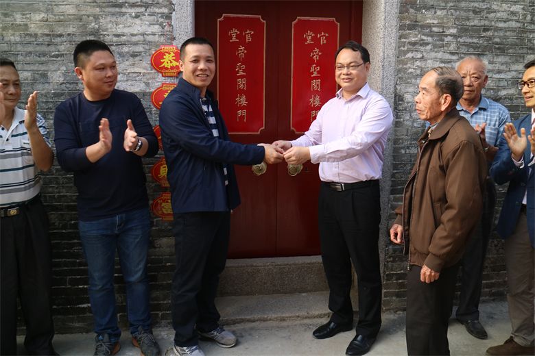 1月31日下午,马冈镇官堂古村八音奏响,醒狮舞动,市文物局和镇政府在这条有700多年历史的古村里,为刚刚修缮竣工的“帝圣阁”举行简朴而热烈的交接仪式,市文物局梁锦桥股长、马冈镇张诗存镇长、陈光耀副书记及官堂村乡贤、群众参加了仪式。