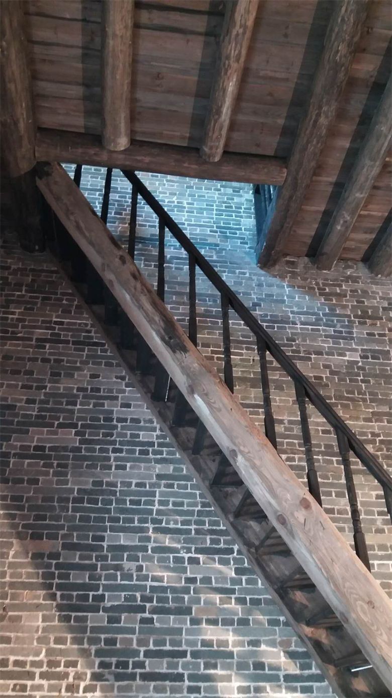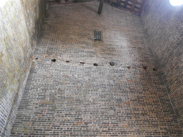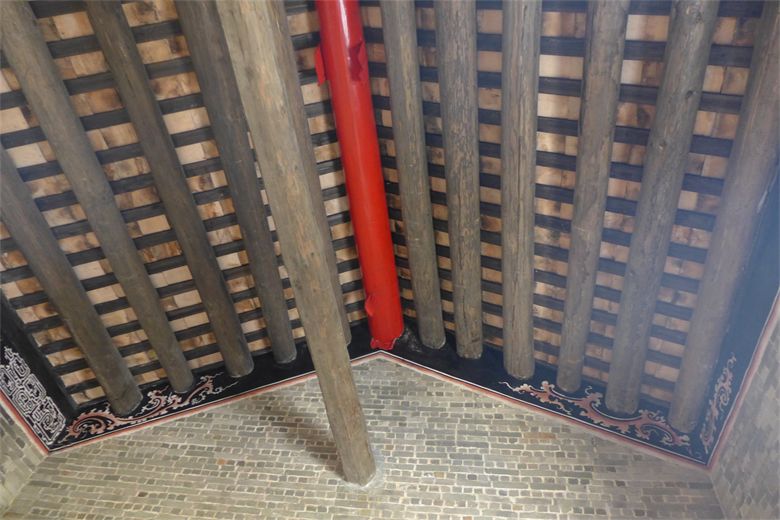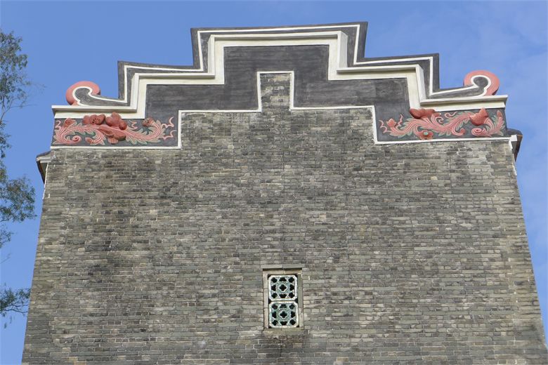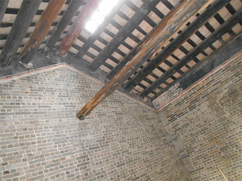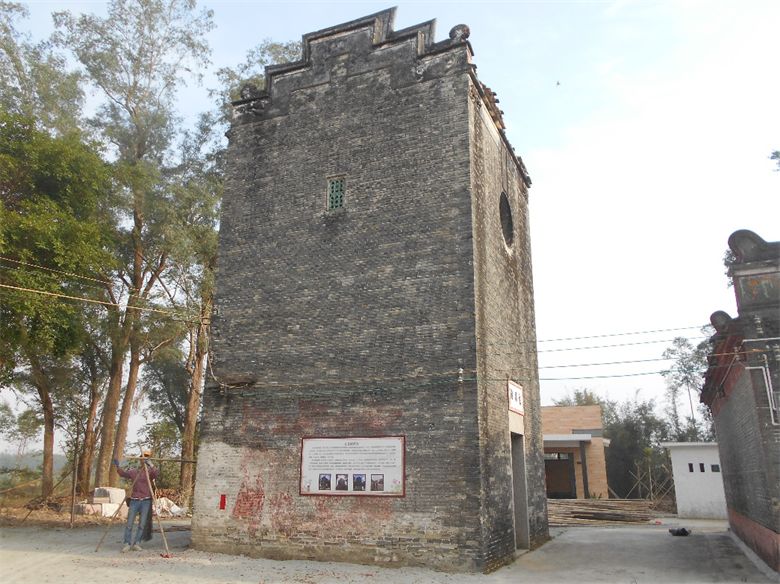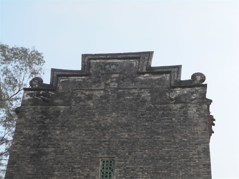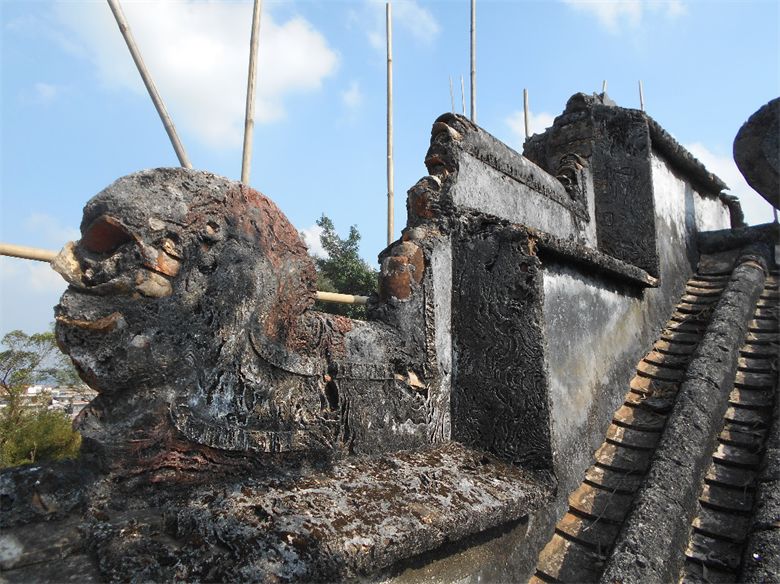 据了解,“帝圣阁”历年多次维修,现存建筑建于嘉庆年间,占地面积36平方米,楼高11米,砖木结构,屋顶有鳌鱼葫芦陶塑。建筑与正面北立山顶双主峰(笔架峰)相对,寓意祈求村民平安、文昌高照、金榜题名,独占鳌头。由于年久失修,建筑处于荒毁状况,存在局部墙砖块风化、松动;瓦屋面破损、透光、部分掉落,木梁破损;地面大阶砖和木阁楼缺失;灰塑、彩画风化褪色严重;屋面寄生绿色植物等。