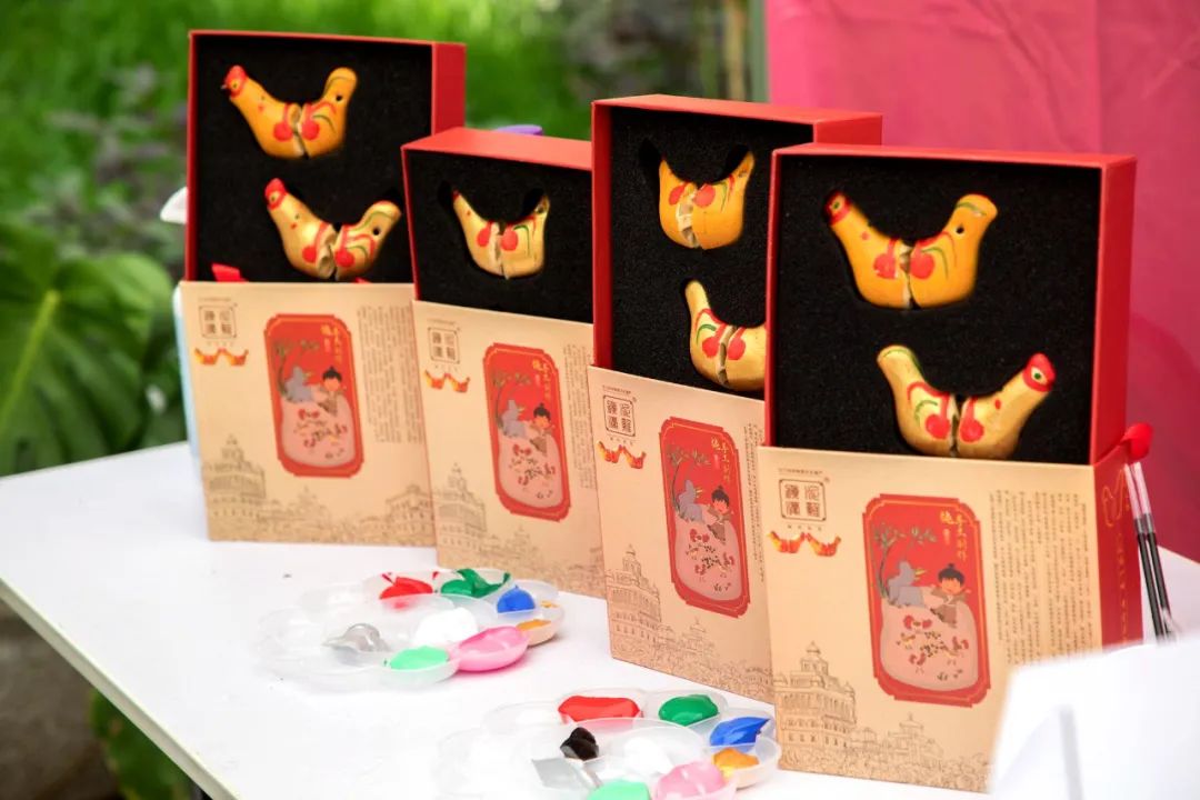活动上,传承.创新“镇濠泥鸡”DIY彩绘互动游戏吸引了众多公众参与,他们玩泥鸡、吹泥鸡,并在泥鸡上彩绘上自己喜爱的图案,不亦乐乎。