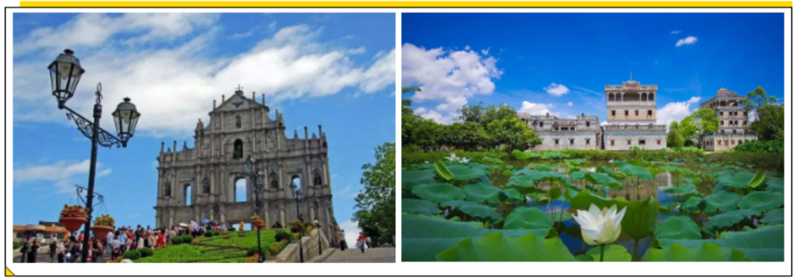“澳门历史城区”和“开平碉楼与村落”是粤港澳大湾区两处世界文化遗产,两地一直致力于加强文化领域上的交流,发挥两地文化资源优势,推动大湾区文化繁荣发展,共同打造大湾区的文化名牌。