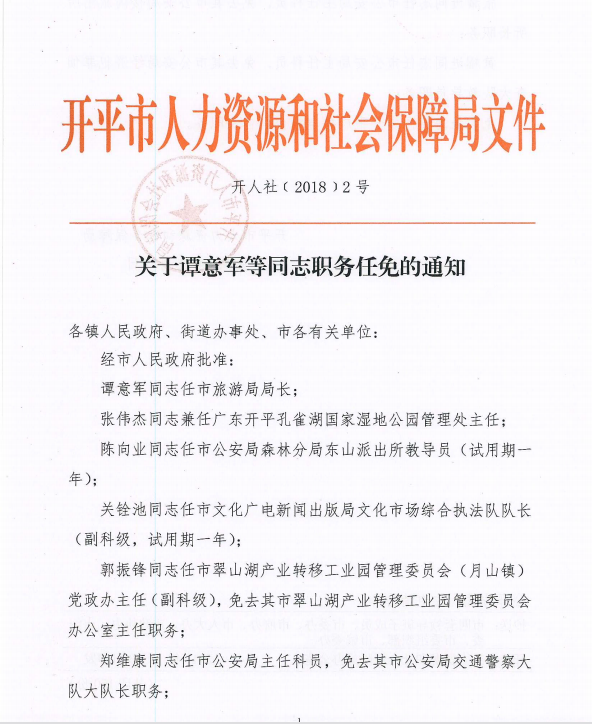 开人社[2018]2号_关于谭意军等同志职务任免的通知