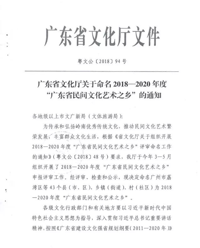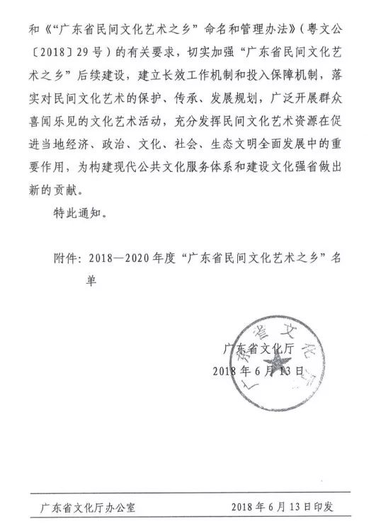 广东省文化厅关于命名2018—2020年度“广东省民间文化艺术之乡”的通知