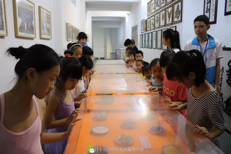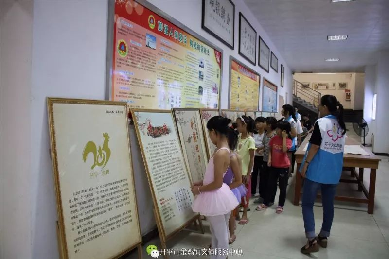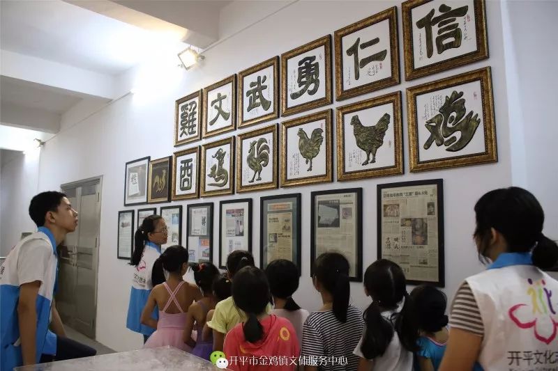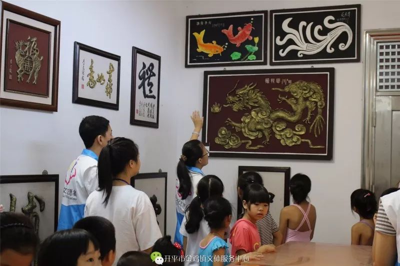 7月24日,暑期公益艺术培训班学生在我镇文化志愿者的带领下,分别参观了开平灰塑展、“鸡”文化长廊和“华侨风采”文化展。通过参观展览,相互交流,不仅让小朋友对我镇特色历史文化有了更深的认识,更是激起小朋友们对灰塑艺术的浓厚兴趣。