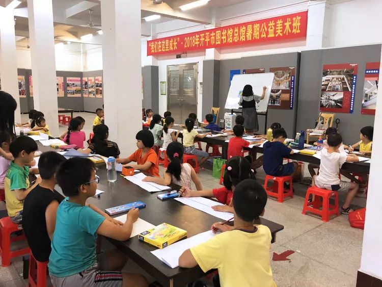 为推进广东省图书馆、文化馆总分馆服务体系建设,通过辐射镇街文体服务中心,实现各类艺术培训、文化活动联办,进一步促进城乡公共文化服务均等化,市文广新局、市图书馆总馆、市文化馆总馆、市各镇街分馆(文体服务中心)联合举办“我们在这里成长”——2018开平市暑期公益艺术培训班。