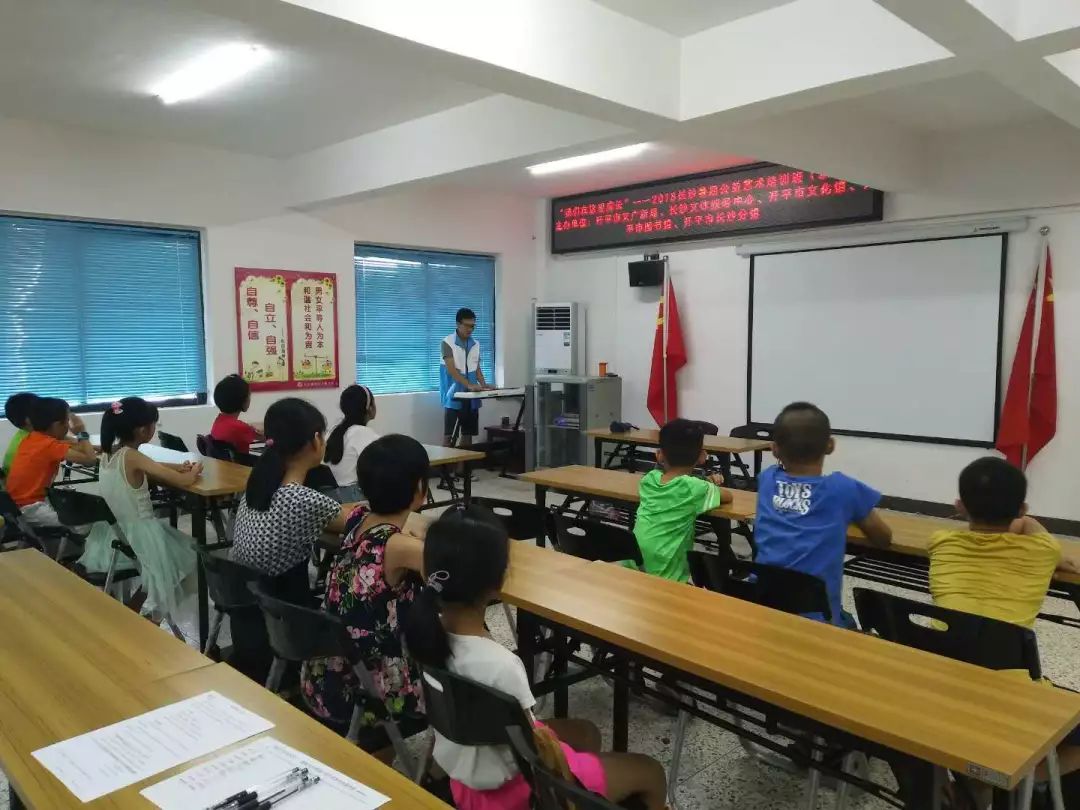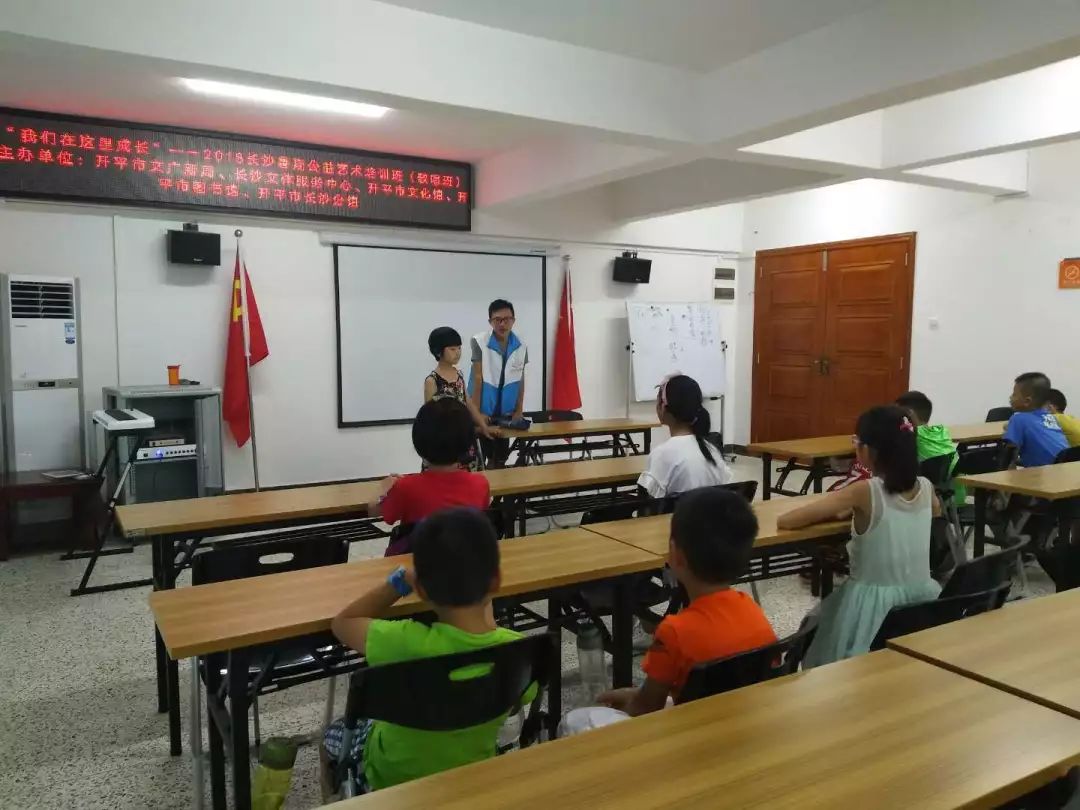 为积极响应我市创建全国文明城市的号召,进一步让公共文化服务设施向社会免费开放,丰富青少年的暑期生活,7月23日,“我们在这里成长”—2018长沙暑期公益艺术培训班正式开课,开启为期10天的艺术学习之旅。