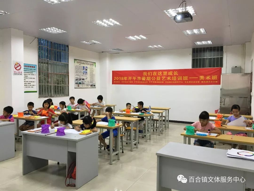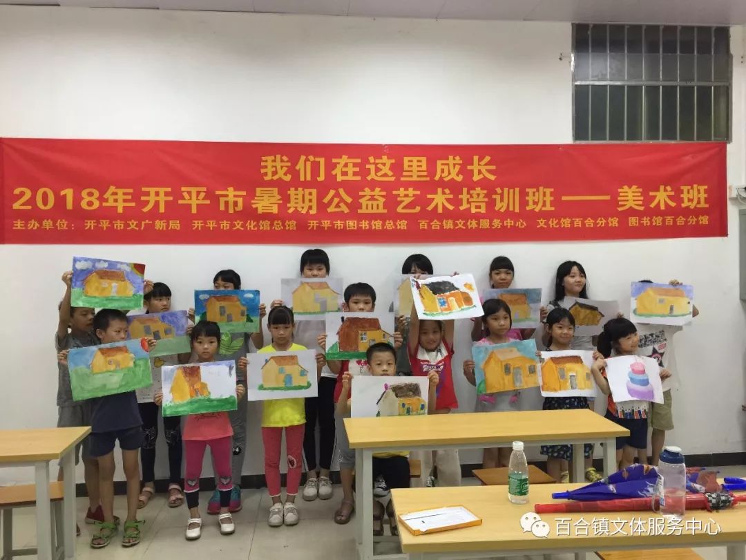 为了进一步推进广东省文化馆、图书馆总分馆体系建设,实现各类艺术培训、文化活动联办,丰富广大青少年的暑期文化生活,提高未成年人思想道德素质,给广大艺术青年爱好者提供一个免费提升艺术技艺的学习机会。市文广新局、市文化馆总馆、市图书馆总馆、百合镇文体服务中心、文化馆百合分馆、图书馆百合分馆联合举办“我们在这里成长”——2018开平市暑期公益艺术培训班(百合站)。