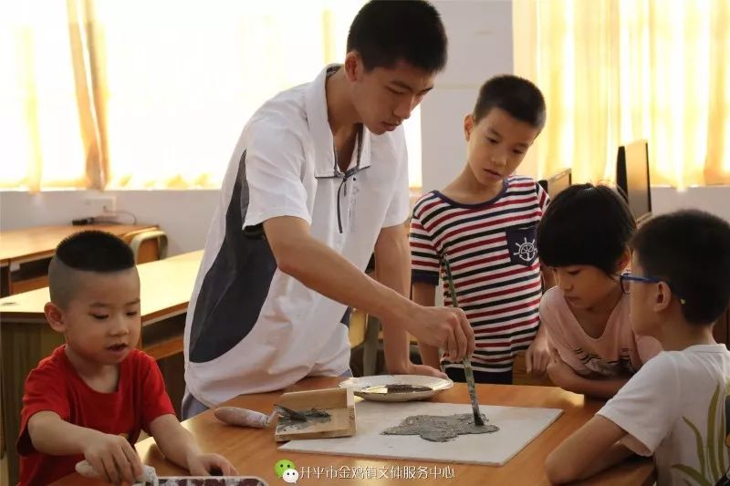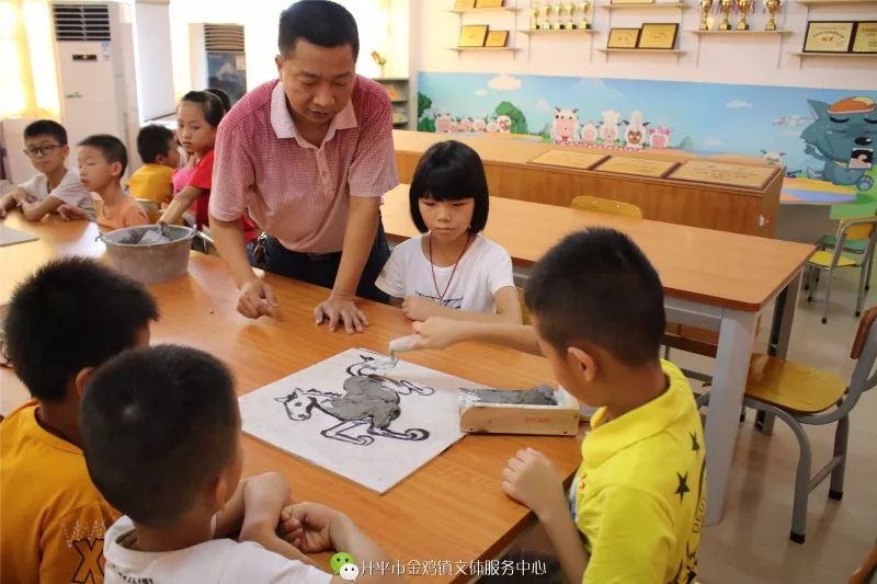 为树立“保护非遗、传承文明、发展文化”的意识,让小朋友零距离接触省级非物质文化遗产“开平灰塑”的制作过程,在开平市文化总馆指导下,特邀请专业的灰雕制作老师为小学员们开展灰雕体验课。为金鸡镇少年儿童培养对灰雕的兴趣爱好,提高对非物质文化遗产的认识,创造保护、传承、发展的良好氛围。