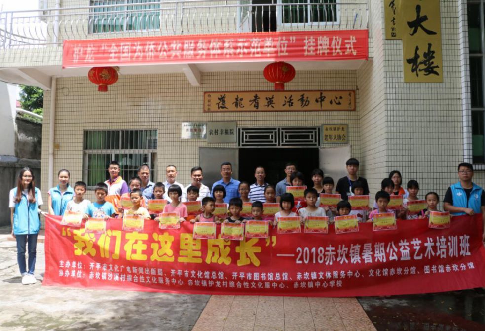 7月16日在赤坎镇沙溪村综合性文化服务中心以及护龙活动中心开班,一共设有写作、英语朗诵和书法三个班。为期十天,于7月27日结束并举行了结业典礼。