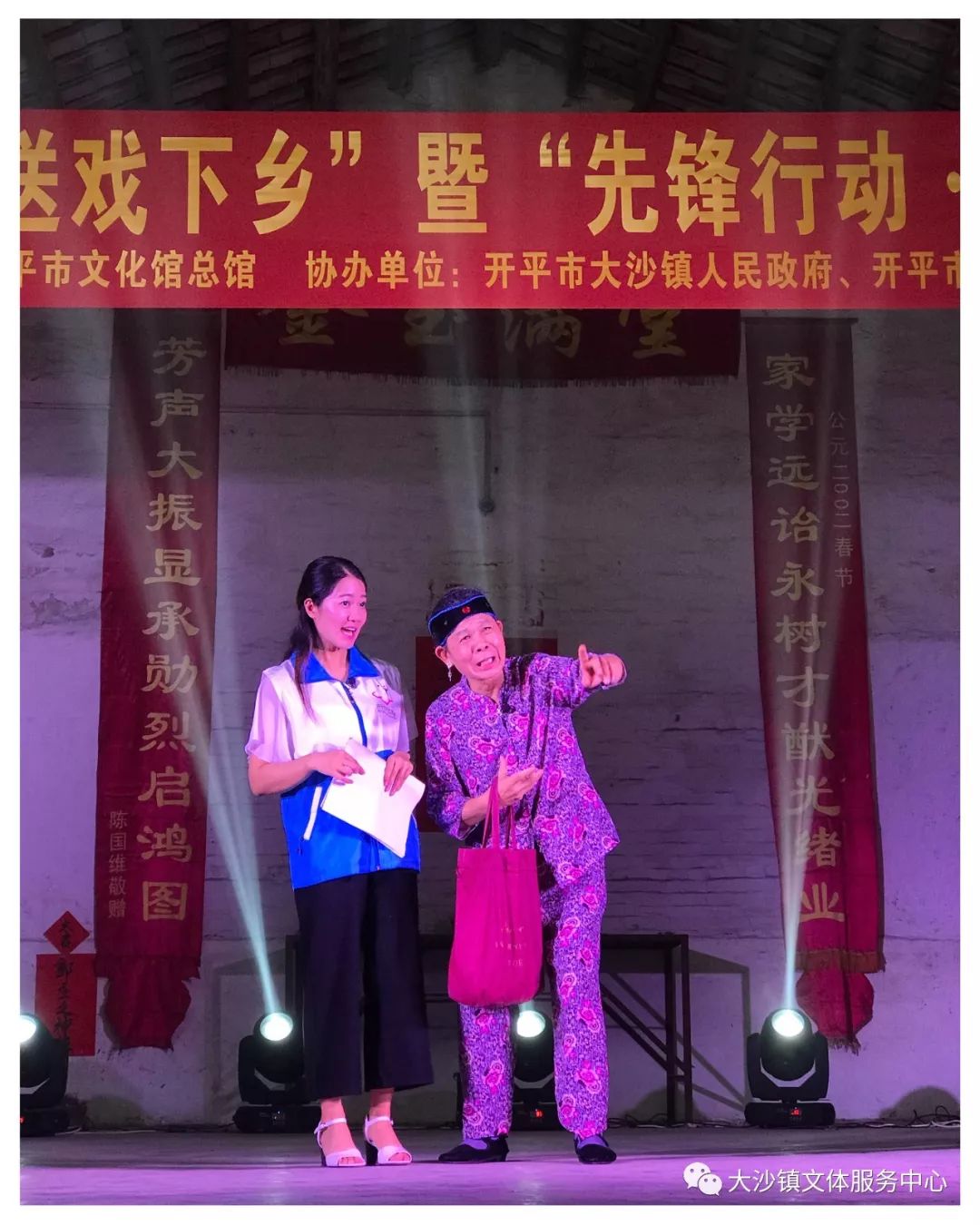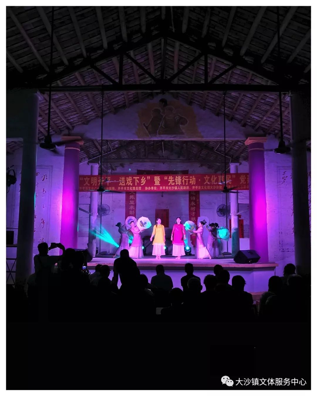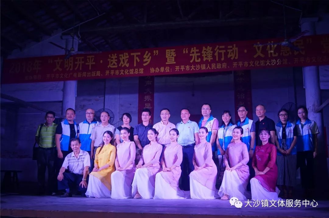 为深入贯彻落实党的十九大乡村振兴战略,坚持以党建为引领,深入开展“文化惠民”活动,同时为积极响应我市创建全国文明城市的号召,以实际行动汇聚起创建全国文明城市的强大正能量,8月6日,由开平市文广新局、开平市文化馆总馆主办,开平市文化馆大沙分馆协办的“文明开平·送戏下乡”暨“先锋行动·文化惠民”党建活动在大沙镇新沃江村上演。市文广新局党组书记、局长谭伟强带领全体班子成员,大沙镇党委副书记、镇长温伟荣,党委委员、副镇长杨伯俊,副镇长吴顺风出席了晚会。