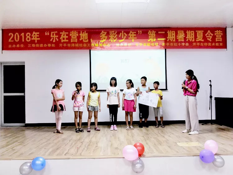 8月20日下午,为响应广大读者朋友的参与热情,由开平市公益创投组委会、三埠街道办、三埠街道社会治理公益创投项目携手开平市图书馆、左印美术教育联合举办的2018年“乐在营地,多彩少年”第一届第二期夏令营,在市图书馆一楼报告厅拉开了序幕,50名小营员将在社工义工的带领下,度过又一个快乐、难忘而又富有意义的一周。