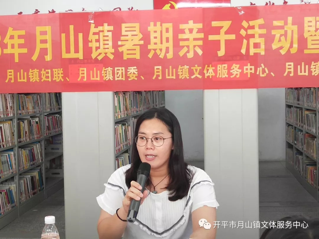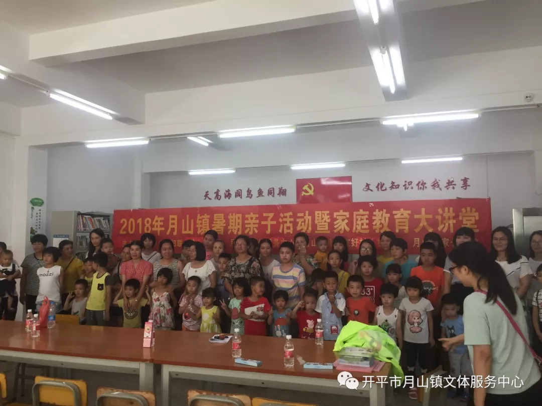 为进一步加强和改进未成人思想道德建设工作,推动我镇和谐家庭文化的普及、发展和提高,促进新家庭文化建设,为孩子创造一个良好的成长环境。8月21日下午由月山镇妇联、团委、文体服务中心、儿童友好村(社区)、月山镇家长学校主办的2018年暑期亲子活动暨家庭教育大讲堂活动在我镇文体服务中心二楼图书馆举行。副镇长、妇联主席余丽如出席了本次活动,来自全镇35户家庭,约70人参加了此次活动。