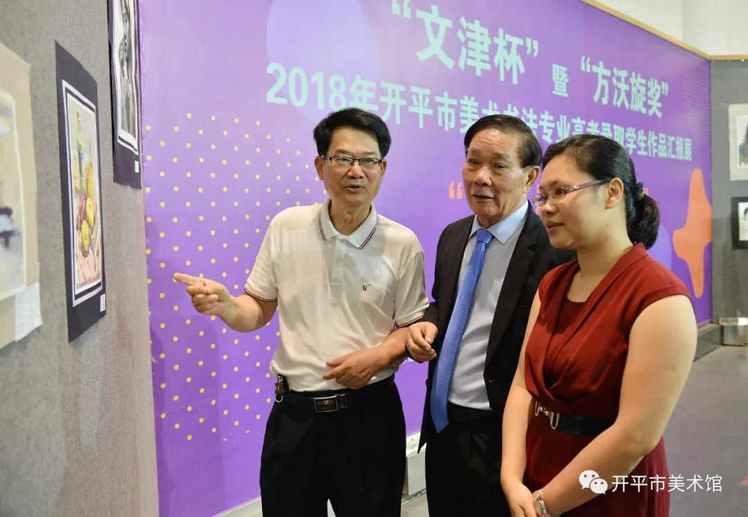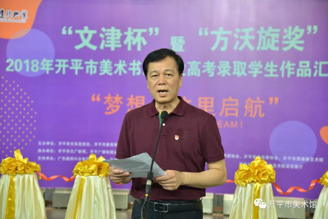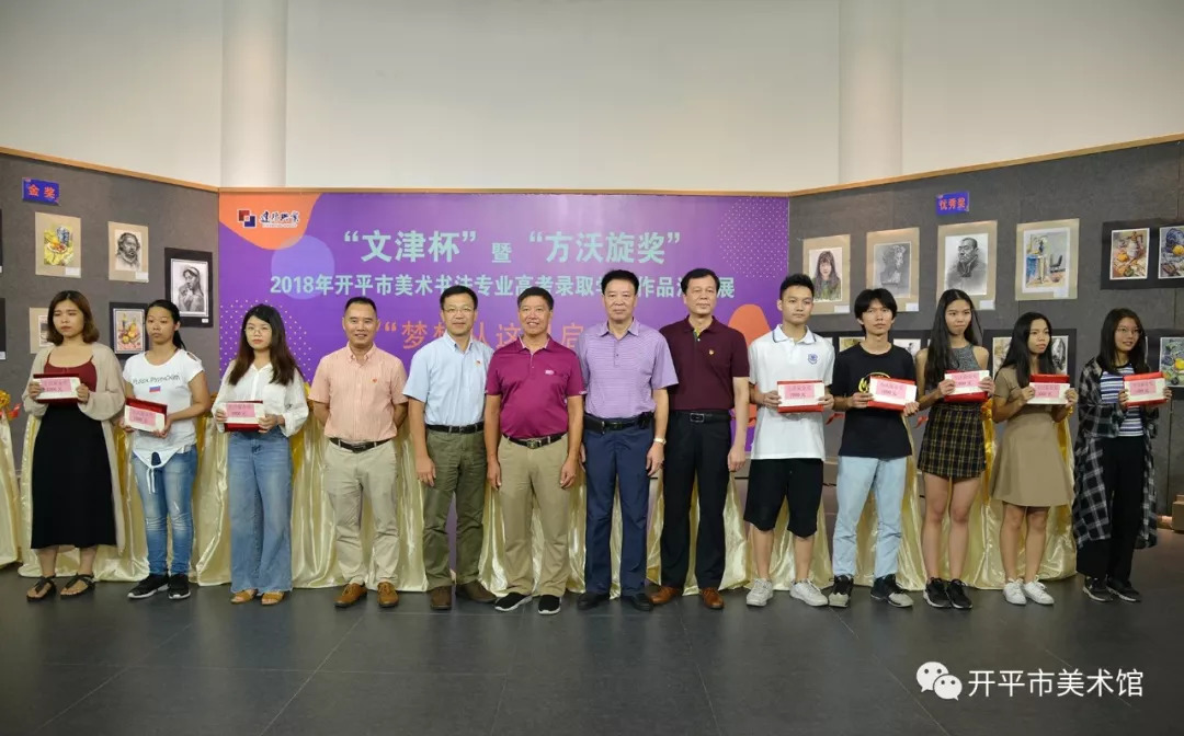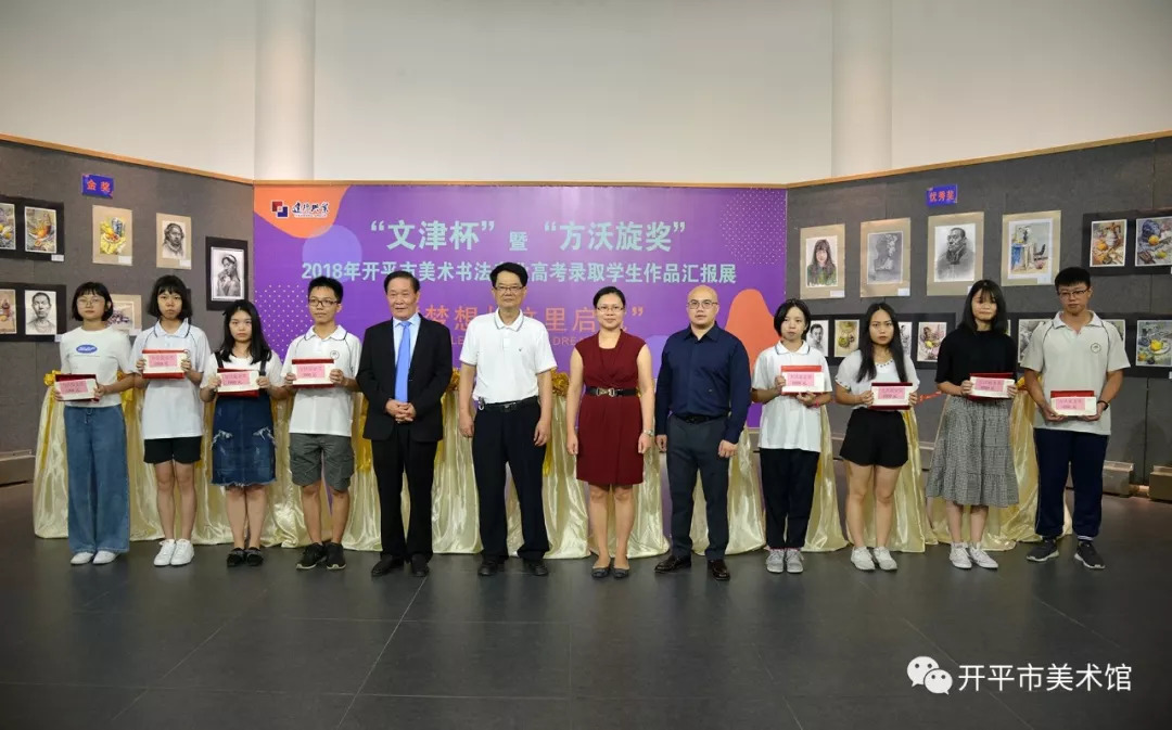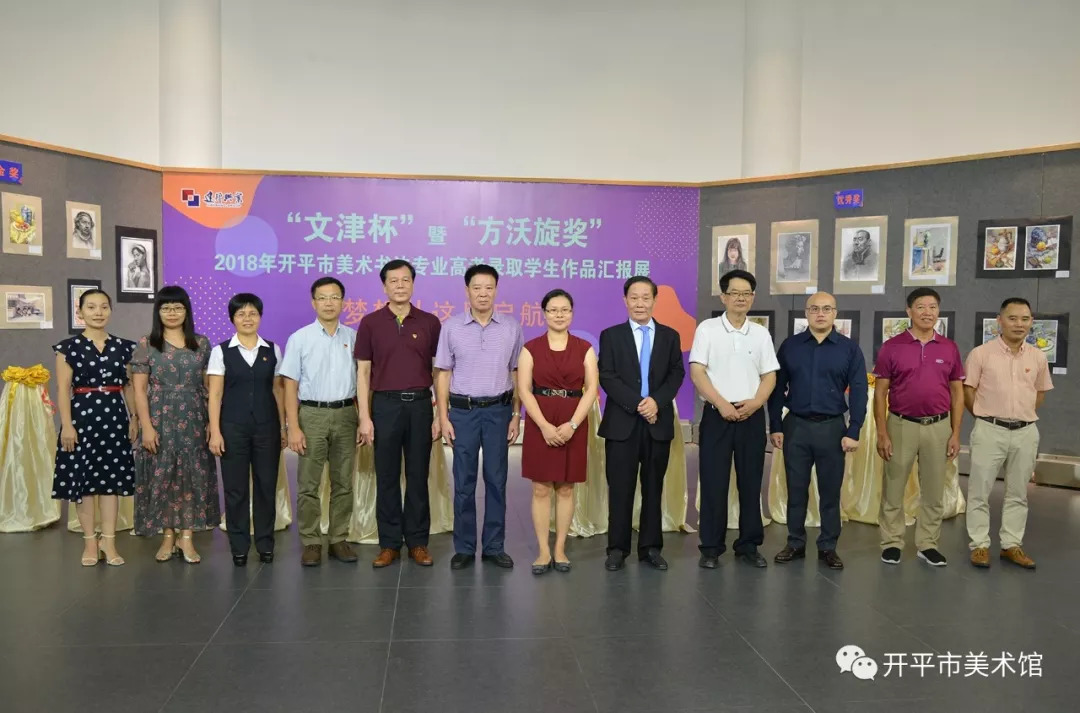 2018年8月24日下午,由开平市文化促进会、开平市教育局、开平市文联主办的“文津杯”暨“方沃旋奖”2018年开平市美术书法专业高考录取学生作品汇报展开幕典礼在开平市美术馆隆重举行。开平市领导黄力奔、市文化促进会创会会长谭思哲以及有关部门领导、支持单位、有关学校老师、获奖学生等300多人出席了大会。