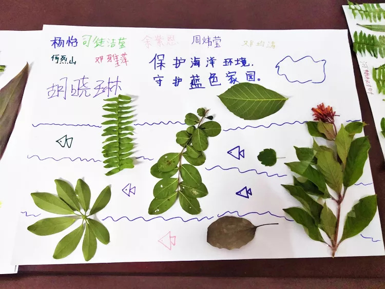 第二天,邀请了三埠卫生院杨慧英医生给小营员分享“拥抱健康,快乐成长”家庭教育讲座。第二个项目,由每位小营员精心挑选出一片自己喜欢的叶子,以组为单位合作制作出一幅创意图画。