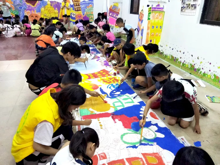 第三天,小营员们来到公益创投祥龙站点,用手中的画笔来描绘他们心中的碉楼。美术义工老师先以问答的形式来让小营员对心目中的碉楼有初步的映像,接着再介绍绘画的基本构图、色调调配、视觉勾勒等基础知识,引导小小营员们共同合作完成五彩缤纷的巨幅碉楼作品。