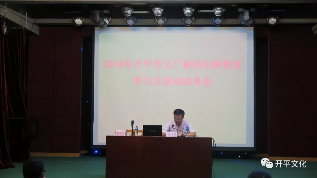 8月31日下午,市文广新局召开纪律教育学习月活动动员会。市文广新局党组书记、局长谭伟强同志主持会议并作了动员讲话,市纪委监委派驻市卫生和计划生育局纪检组组长李应腾应邀参加会议并上专题辅导课。