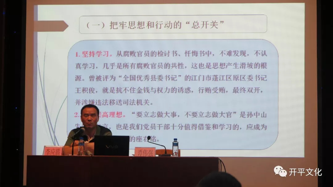 随后,李应腾组长结合学习《监察法》,以“学法守纪,做敢担当、善作为的清廉干部”为题,深入浅出地宣讲法律条文,帮助大家解读悟透《监察法》的内涵精髓;深刻剖析我市个案,以案说法,帮助大家掌握当前反腐新形势,对我局推动依法行政和党风廉政工作,为全体党员干部上了一堂生动、精彩的专题辅导课。。