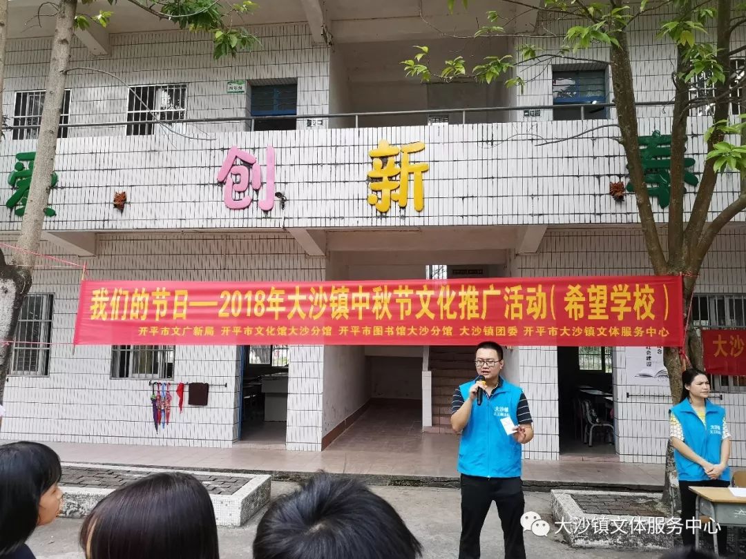 为培育和践行社会主义核心价值观,深化未成年人思想道德教育,充分挖掘中国传统节日(中秋节)的深厚文化内涵,引导学生认知传统、尊重传统、弘扬传统,让学生进一步了解、认同、喜爱传统节日,增强爱国情感,学会孝老敬亲奏和谐,9月20日下午,由市文广新局、市文化馆大沙分馆、市图书馆大沙分馆、大沙镇文体服务中心和大沙镇团委联合举办的“我们的节日”-2018年大沙镇中秋节文化推广活动在我镇希望学校举行,全校200多名学生参与了本次活动。