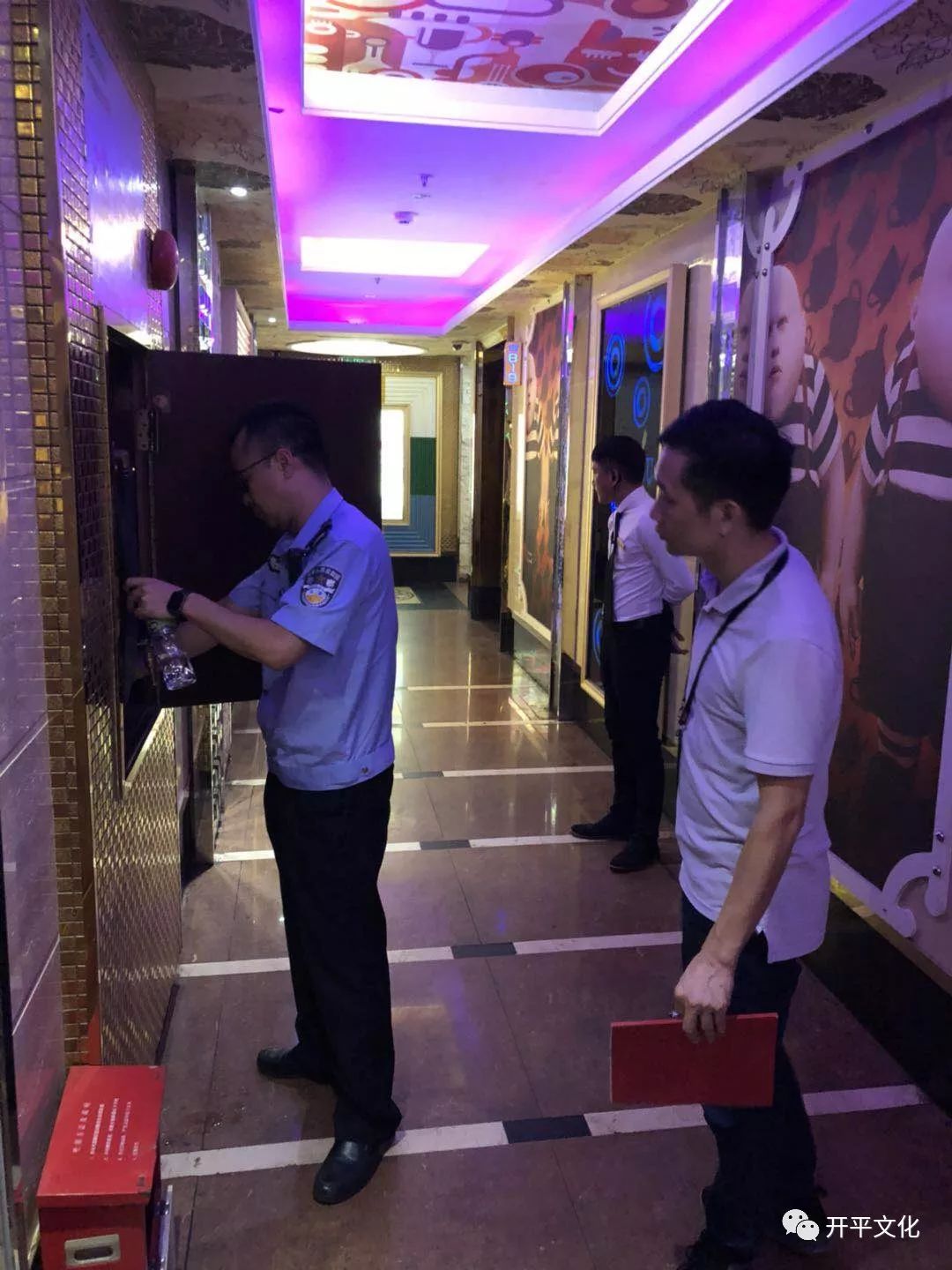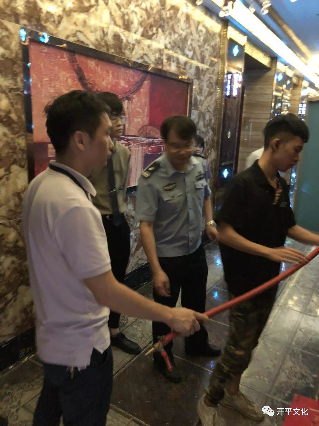 中秋、国庆佳节前夕,开平市文化广电新闻出版局联合消防大队、治安大队开展节前安全生产专项行动,对歌舞娱乐场所、电影院、网吧等公众密集场所,以及非物质文化遗产展览馆、图书馆、文化馆等群众性场馆进行检查,重点查看消防安全设备设施,排查安全隐患。