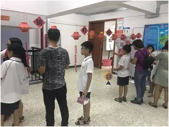 第三个环节猜谜语,亲子们看着一个个谜语认真思考,争先恐后的互相竞猜,有的亲子猜不出谜语脸上露出疑难之情,有的亲子经过绞尽脑汁的思考之后猜出答案,脸上露出喜气洋洋的笑容,然后兴致勃勃的到领奖处兑奖。大家你一言,我一语,场面非常热闹。
