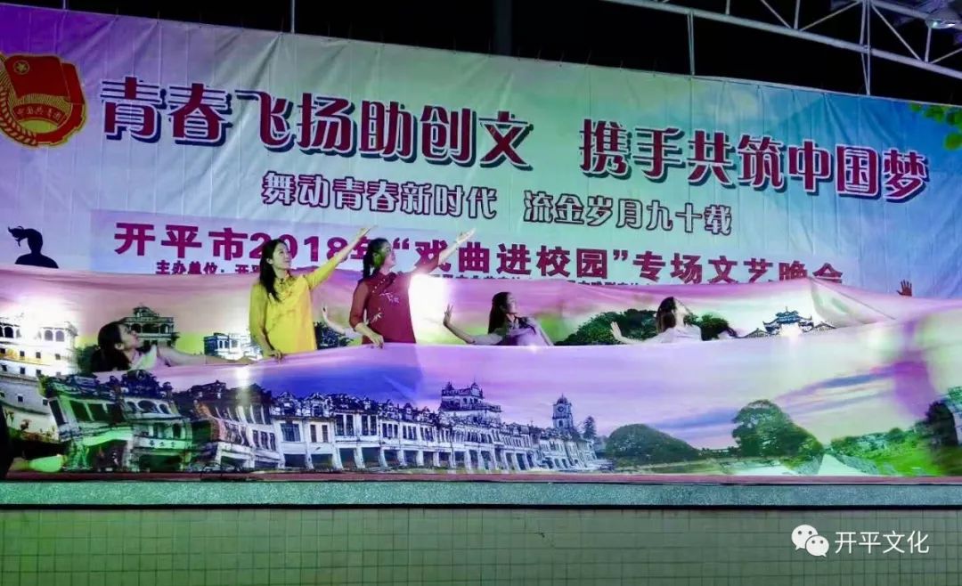 10月31日晚,在长师中学90年校庆之际,“戏曲进校园”助力长师中学文艺晚会,开平市文化志愿者为学生们带来戏曲《绣碉楼》、戏剧选段表演《平湖秋月》、小品《父子卖药》《五伯问字》、粤剧折子戏《绝情谷底侠侣情》等精彩的戏曲戏剧表演。