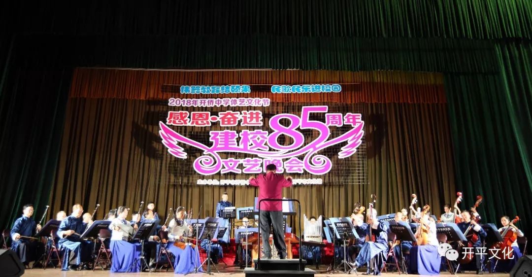 民乐、民歌展演助力开侨中学建校85周年文艺晚会。11月1日晚,开侨中学举行建校85周年文艺晚会,晚会在全体师生大合唱《生日快乐》歌中拉开帷幕。开平市民间乐团带来民乐表演《孔雀开屏》、《花好月圆》,获得学生们雷鸣般的掌声。当“乡音徵羽”组合带来的民歌表演唱《地灵人杰颂开平》时,学生们听到熟悉的开平话歌曲,马上响起掌声拍和并跟着哼唱起来,开平民歌的曲调,也许从小就在他们耳边萦绕着。