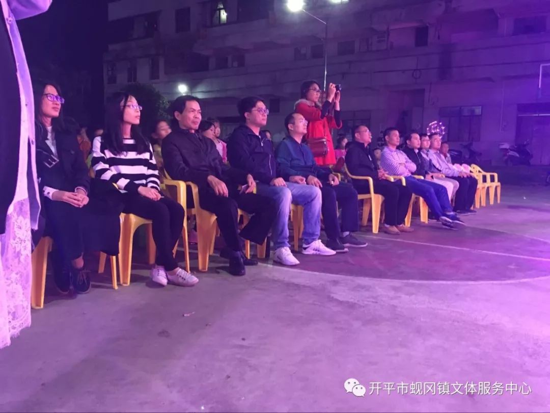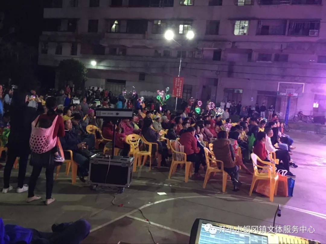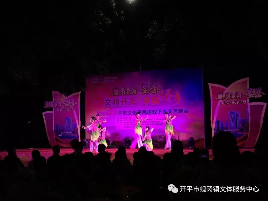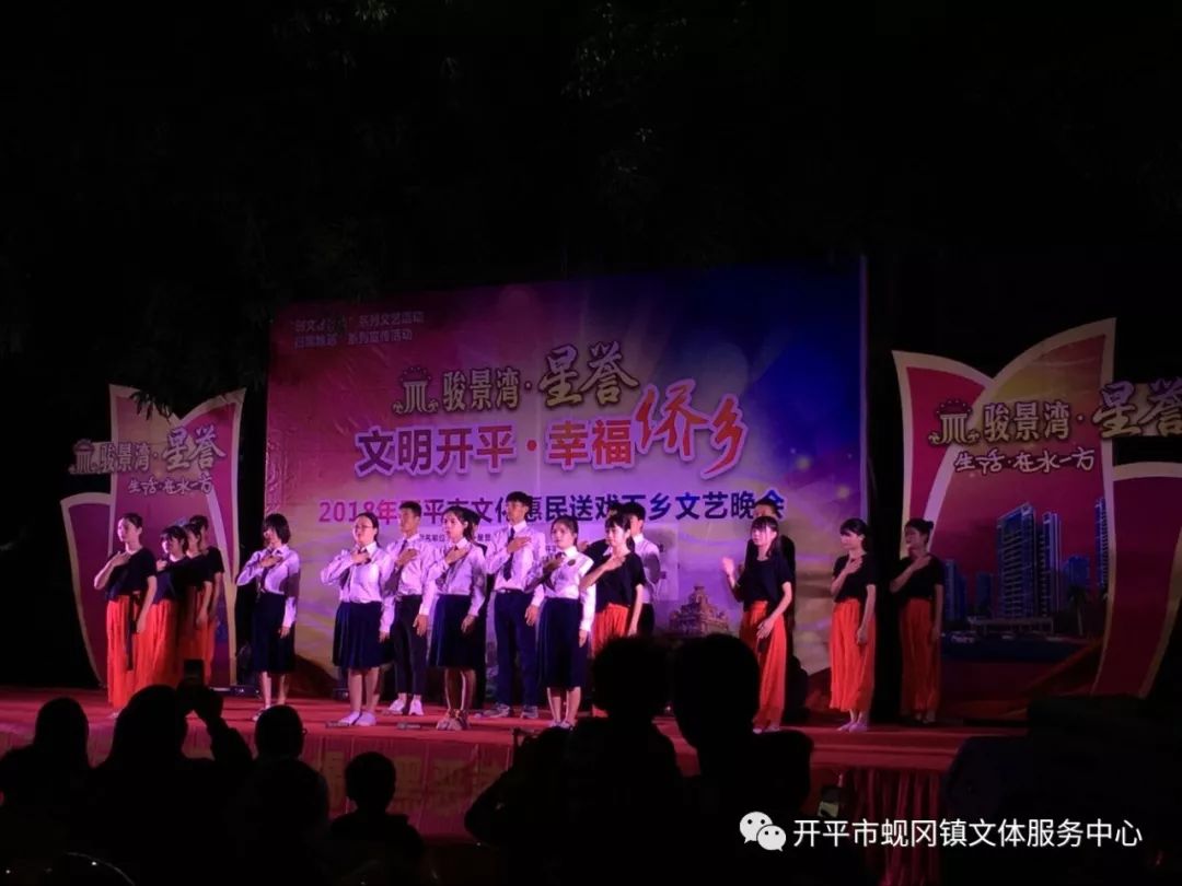2018年11月22日晚上,由开平市文广新局、开平广播电视台、市文化馆主办的骏景湾•星誉“文明开平•幸福侨乡”文化惠民送戏下乡巡演来到蚬冈镇文化广场,给当地村民带来了一场歌舞盛宴。蚬冈镇全体领导班子出席了本次晚会,各部门干部、蚬冈派出所、辖区群众、学生等500多人共同参与。