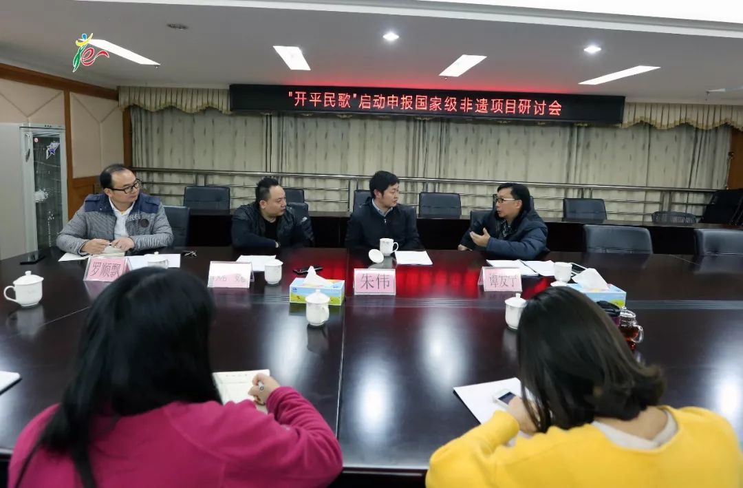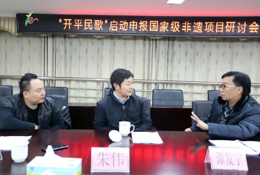 12月13日晚上,市文广新局联合开平市文化馆(开平市非物质文化遗产保护中心)在市文广新局会议室召开了“开平民歌”启动申报国家级非遗项目研讨会,邀请了广东省非物质文化遗产保护中心办公室主任朱伟莅临参加会议。