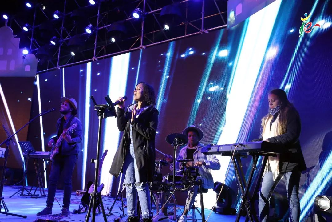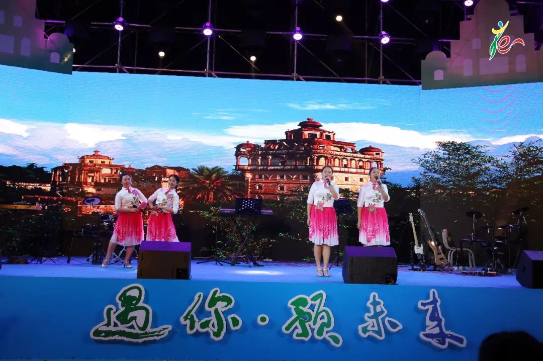 在绚烂夺目的灯光秀之后,“律动开平”——乡村音乐会正式开始!国外及本地乐队倾情演唱,别有一番风味。而开平民歌表演唱《碉楼之乡欢迎您》和童声独唱《吹泥鸡》,作为侨乡本土节目登场,向观众展示了“世遗”碉楼的韵味,以及“非遗”项目开平民歌和镇濠泥鸡的特色,向观众展示着开平非遗保护工作的优秀成果,向游客传播侨乡本土文化。