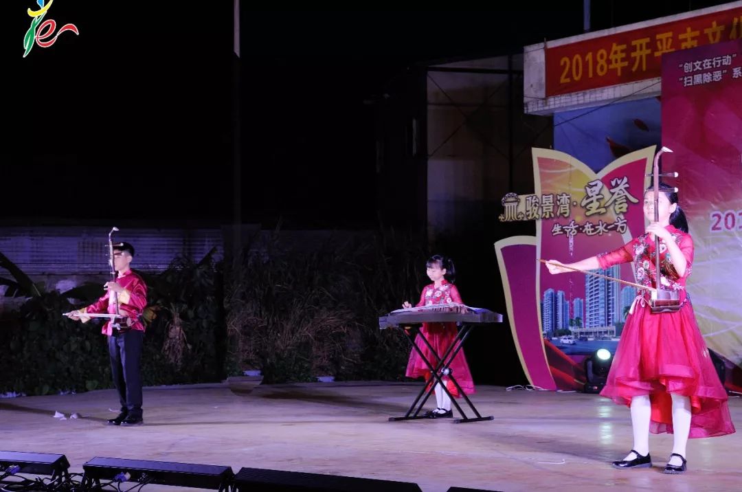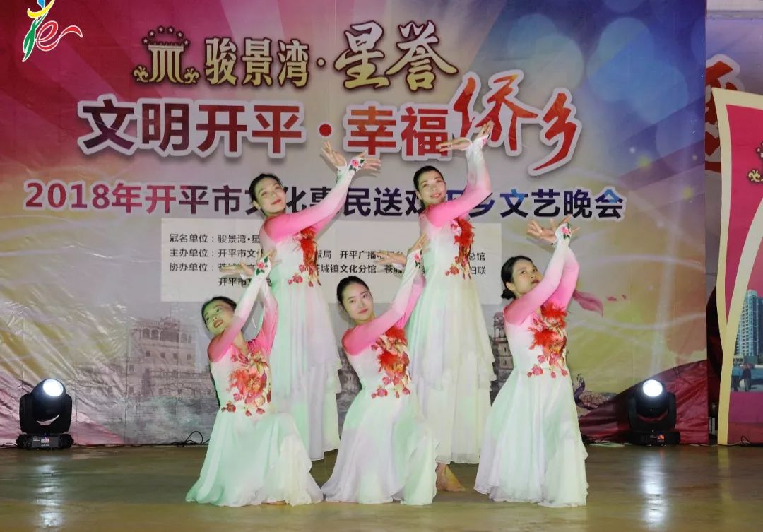 晚会以舞蹈《祖国的好江南》拉开序幕,共13个节目,有市文化志愿团的文化志愿参与演出的节目开平民歌《扫黑除恶保平安》、粤曲小调《诚心祝福你》、童声小组唱《雪娃娃》《我家住在阿勒泰》、粤曲对唱《绝情谷底侠侣情》、小品《补苗》、舞蹈《相逢春天》、器乐合奏《我的祖国》、开平民歌表演唱《地灵人杰颂开平》、男声独唱《咱老百姓》,也有苍城镇中心小学的舞蹈《篮球宝贝》,苍城镇群众的舞蹈《Cinderella》、《中国范儿》、《五星红旗飘起来》。