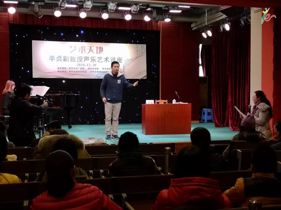 12月30日下午,开平市文化艺术中心二楼小剧场里迎来了一场声乐艺术讲座,那就是“艺术天地”李贞副教授声乐艺术讲座!活动吸引了我市一百多名音乐爱好者前来参加