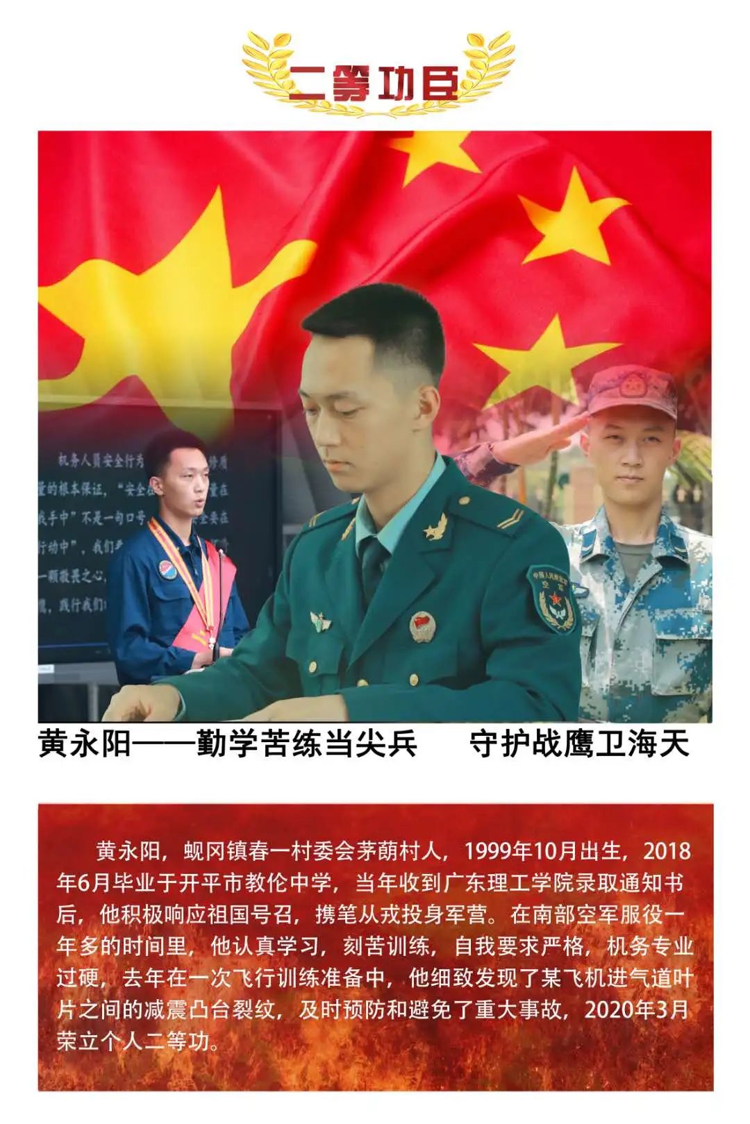 黄永阳的发现,预防和避免了事故,使国家、军队和人民群众的利益免受损失,荣立二等功!作为一名航空机务兵,黄永阳爱战鹰、爱机场,甘当蓝天铺路石,争做战鹰守护神,坚守岗位讲奉献,精忠报国为强军。