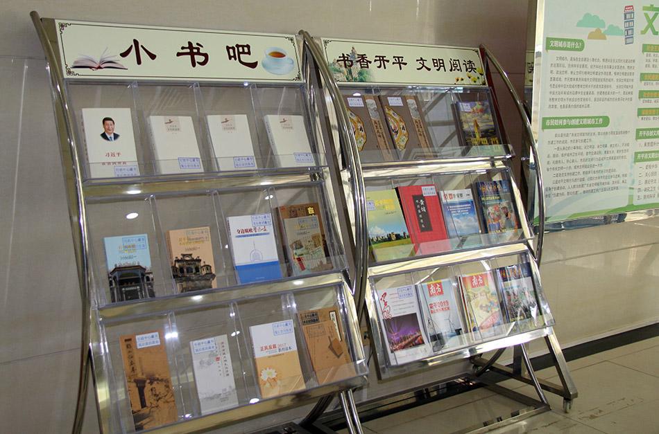 近日,开平市行政服务中心多了一个“小书吧”,它位于二楼等候服务区的一角。新鲜事物的出现,总能引起人们的关注,不时的,有前来办事的市民走了过来,拿起书刊杂志瞧瞧。