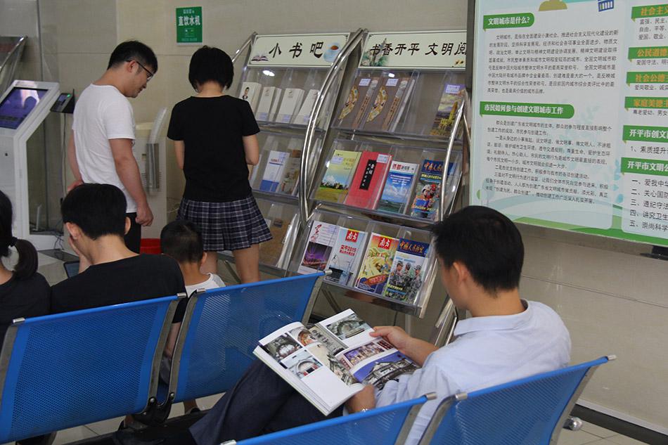 “‘小书吧’由专人管理,及时更新,贴近实际。‘书吧’虽小,但时政类、礼仪类、创文宣传、开平碉楼与村落等内容的书刊杂志一应俱全。”市政务服务数据管理局办公室干部罗秀菊说:“行政服务中心办事大厅人流密集,‘小书吧’不仅可以成为我市‘创文’宣传的一个小小阵地,还能在办证高峰期分流排队等候的部分市民,有效缓解窗口的压力,受到群众点赞。”