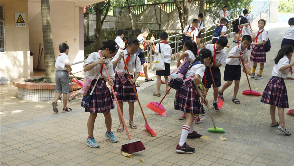 文艺表演后,学生们拿起清洁工具,把院子里的落叶和垃圾清理干净。长师附小希望通过活动从小培养学生的社会责任心,传承发扬中华民族尊老爱老传统美德。